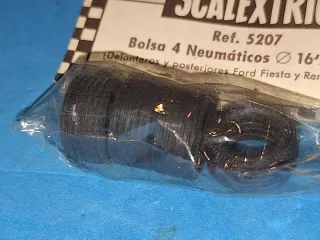 Bolsa de 4 neumáticos Scalextric Exin para coches Ford Fiesta y Renault 5 Copa. En su blister sin abrir en perfecto estado, fondo de almacén de antigua jugueteria - Referencia: 5207. - Diámetro: 16'5 mm. - Neumáticos delanteros y traseros , 4uds en total NO negociable Entrega en mano o envío por Wallapop o pago por ingreso/bizum y envío certificado Juguete antiguo , vintage , retro , Scalextric , slot , SCX , escalextric , neumático, neumáticos, repuesto , recambio original , reparación, restauración , Calberson , BP , neumáticos , neumatico