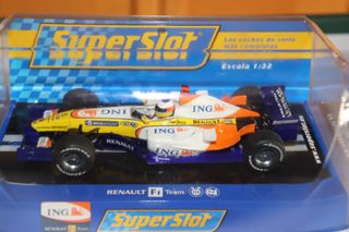 Se venden dos coches Scalextric de Renault F1 pilotados por Fernando Alonso. Nuevos y en su caja original. Fabricados por Superslot en escala 1/32 - Incluye dos coches de Fórmula 1 Renault. - Escala 1:32. - Perfectos para coleccionistas o aficionados.