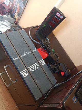Pista de Scalextric con dos mandos contador de vueltas digital y su cargador correspondiente sin coches para más info preguntar gracias