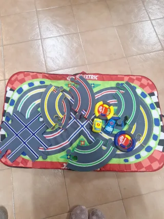 Circuito de Scalextric usado, perfecto para revivir la emoción de las carreras. - Incluye 2 mandos para controlar los coches. - Ideal para coleccionistas o para empezar en el mundo del slot. Está nuevo usado unos días pero se vende sin devolución
