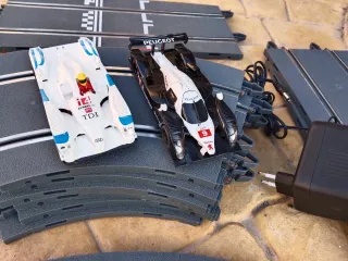 coches Scalextric y pistas para montar tu circuito, Audi r10 Peugeot 908 HDIFAP todo se vende juntos no separado. - Incluye dos coches de carreras. - Variedad de tramos de pista para crear diferentes recorridos. - Incluye transformador y cables de conexión.
