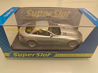 Réplica del coche deportivo Mercedes-Benz SLR McLaren de la marca SuperSlot. Como nuevo sin ningún desperfecto.Usado una vez para probarlo. La caja expositora tiene 2 esquinas dañadas. - Modelo a escala 1:32 - Base expositora incluida con el logo de Mercedes-Benz SLR McLaren. - Marca: SuperSlot - En su caja original - 2 juegos de trencillas de repuesto - Luces frontales y posteriores. Scalextric. Carrera. Fly. Superslot.Ninco