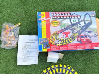 estupendo scalextric con 2 coches y todos sus accessorios apenas se utilizo cuando se compro esta prácticamente nuevo todas las pistas y otros acessorios. Se desconoce si funciona o no