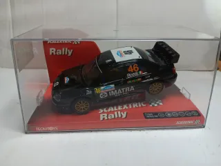 Coche de Scalextric modelo Subaru Impreza WRC. - Réplica del coche de rally número 46. - Presentado en su caja original. - Diseño en color negro con detalles de patrocinadores.