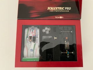 Scalextric Audi R8 Pro 5026. En perfecto estado. Incluye coche, chasis, ruedas, llantas de aluminio, ejes calibrados, embellecedores para llantas. Guía de repuesto, cuna de motor de repuesto, freno dinámico de repuesto y tornillos de repuesto con llave allen.¡Perfecto para coleccionistas o aficionados al slot! - Modelo: Audi R8 - Marca: Scalextric Pro - Incluye manual de pilotaje y mantenimiento muy completo, con los correspondientes ajustes del eje delantero, trasero, cuna del motor y freno dinámico. También las correspondientes relaciones de transmisión. Instrucciones de pilotaje en pista.