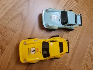 Se vende pareja de coches de slot Porsche Carrera de Scalextric Exin. Modelos clásicos para coleccionistas. - Coche Porsche Carrera amarillo con dorsal 5. - Coche Porsche Carrera azul claro con dorsal 42. - Ambos coches presentan detalles de patrocinadores como Bosch y Goodyear.