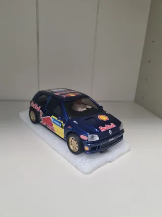 Coche de slot a escala, ideal para coleccionistas o aficionados a las carreras. - Diseño inspirado en el equipo Red Bull. - Detalles de patrocinadores como Shell y otros. - Incluye figura de piloto. - Color azul oscuro con detalles en amarillo y rojo NO ENVIO POR WALLAPOP