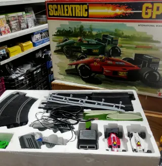 Set de pista Scalextric GP International Model. - Incluye coches de carreras. - Componentes de pista. - Mando de control.