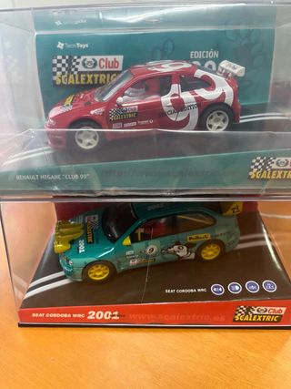 Se venden dos coches de Scalextric, un Renault Megane Club 99 y un Seat Cordoba WRC 2001. Ambos están sin estrenar. - Renault Megane Club 99 Edición Especial. - Seat Cordoba WRC 2001.