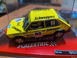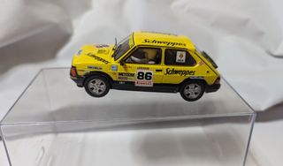 Coche de Scalextric a escala del Seat Ibiza. - Color amarillo. - Decoración de competición con patrocinadores. - Número de dorsal 41.