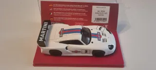 Réplica del coche de carreras Porsche GT3 EVO con decoración Martini. - Modelo: Ref. 87002 - Marca: Poly Starters - Decoración: Martini Racing - Incluye base expositora roja.