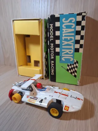 Vendo antiguo coche de Scalextric modelo Sigma color blanco (ref. 4047) fabricado en España por Exin. Le falta 1 llanta, 3 neumáticos y los retrovisores. El motor parece que funciona. La caja tiene la tapa rota. ¡Ideal para restaurar o utilizar sus piezas! Estado aceptable, ver fotografías. Más artículos de coleccionismo y juguetes vintage en mi perfil.