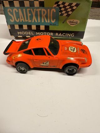 Coche de slot Scalextric modelo Porsche Carrera en color naranja. Un clásico para los amantes de las carreras. - Modelo Porsche Carrera. - Color naranja. - Decoración de competición con dorsal 42 y patrocinadores.