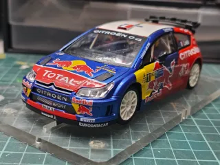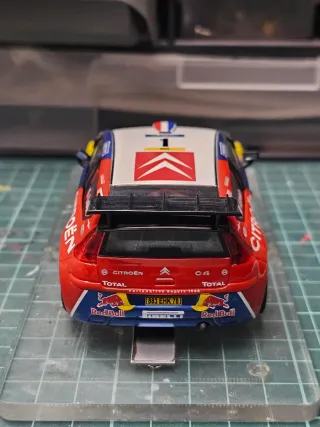 Réplica del coche de rally Citroën C4 de Sébastien Loeb con patrocinio de Red Bull de slot / scalextric. El coche esta usado.
