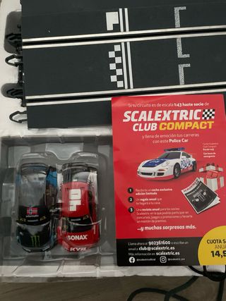 Vendo circuito Scalextric Compact Speed Masters, ideal para niños y para montar en cualquier habitación gracias a su tamaño reducido (escala 1:43). ¡Perfecto para iniciarse en el mundo de Scalextric y disfrutar de emocionantes carreras en casa! El set está completo y en buen estado. Incluye: • Dos coches de competición ((aquí puedes especificar los modelos de coche que tienes)). • Pistas para montar un circuito en forma de ocho. Según el manual, se pueden crear hasta 4 trazados diferentes para variar