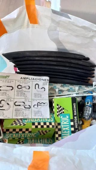 Se vende lote de Scalextric con varias piezas y accesorios. - Varios tramos de pista. - Tramos de curva. - Tramos rectos. - Transformador. - Mandos.