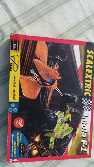 Circuito de carreras Scalextric Imola F-1. Incluye dos coches de Fórmula 1. - Pista de 6.49 m. - Incluye velocímetro electrónico. - Dos coches: Minardi F-1 y Arrows F-1.