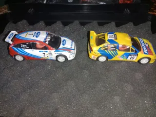 Dos coches de Scalextric Ford Focus WRC. - Coche 1: Ford Focus WRC, dorsal 7, con decoración de Ford y Valvoline. - Coche 2: Ford Focus WRC, dorsal 10, con decoración de Repsol y Neste. Hay más en las fotos Los precios desde 30eur 40eur 50eur