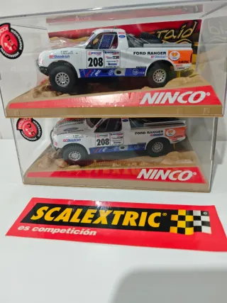 Dos coches de slot Ninco Ford Ranger, modelo Rally Raid de ninco Ref:50326 PRECIO POR UNIDAD - Réplicas detalladas de los Ford Ranger. - Decoración de competición. - Incluye base expositora.