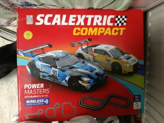 Circuito de coches Scalextric Compact Power Masters. - Incluye 2 coches de carreras. - Pista de 3,6 m de longitud. - Mandos inalámbricos.