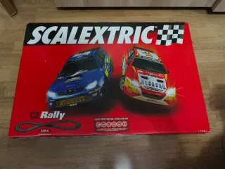 Circuito de Scalextric C2 Rally con dos coches. En perfecto estado, como nuevo. - Incluye dos coches: Subaru Impreza WRC y Citroën Xsara WRC. - Longitud del circuito: 5,09 m.