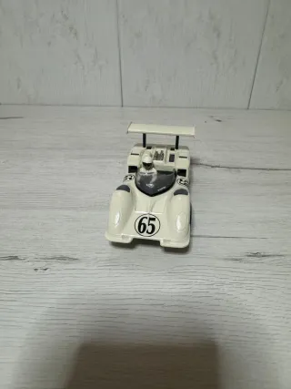 Coche de slot Chaparral GT de Scalextric en escala 1:32. Un modelo clásico para coleccionistas y aficionados. - Diseño deportivo en color blanco. - Detalles de patrocinadores. - Número de carrera 65.