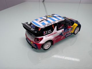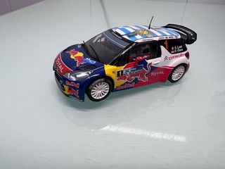 Coche de slot Scalextric Citroën DS3 con decoración Rally Argentina. - Réplica detallada del coche de competición. - Patrocinado por Red Bull y Total. - Incluye dorsal número 1 y nombres de pilotos S. Loeb y D. Elena.
