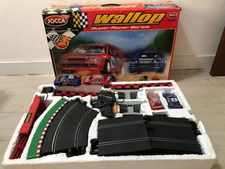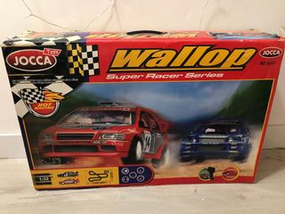 Set de Scalextric JOCСA Wallop Super Racer Series. - Incluye dos coches de carreras: uno rojo y uno azul. - Escala 1:32. - Pista de carreras. - Advertencia: No recomendado para menores de 8 años.