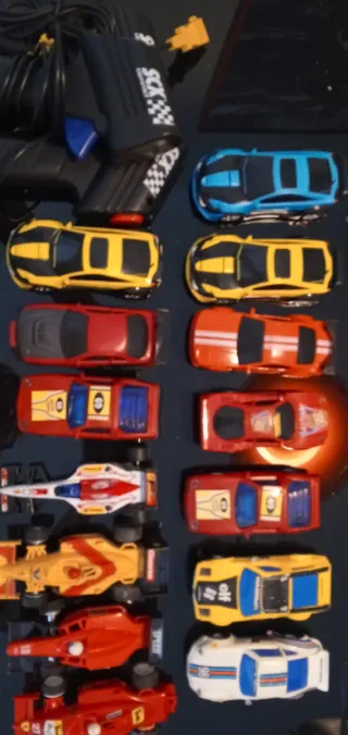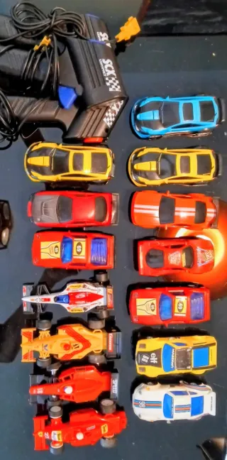 Conjunto de coches de Scalextric y de carremando - Incluye tres mandos de control. - Varios modelos de coches de competición. - Diseños coloridos y detallados.como se ven en fotos hay nuevos y algo más usados