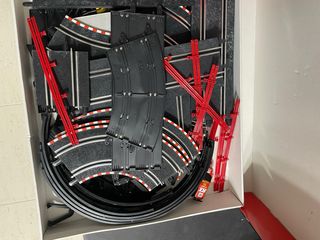 Circuito Scalextric Compact Loopinator para piezas o reparación. Incluye caja original y componentes. - Caja original con diseño de circuito y coches. - Componentes del circuito Scalextric. - Coches de Scalextric. - Mandos y transformador.