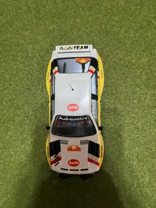 Réplica detallada del coche Audi Quattro de Scalextric, listo para coleccionistas y aficionados. - Diseño inspirado en el Audi Sport. - Decoración Monte Carlo con dorsal número 6. - Detalles como llantas Speedline y neumáticos Michelin.