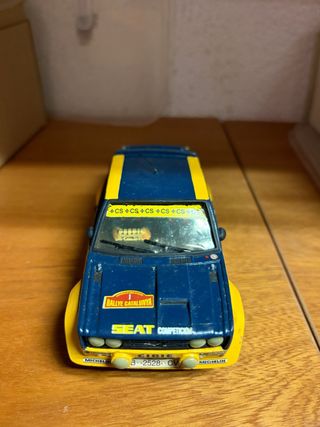 Coche de Scalextric Seat Competicion, modelo Rallye Catalunya. Creo que no se ha usado nunca. Falta limpieza. - Decoración azul y amarilla. - Detalles de patrocinadores como Cibie y Michelin. - Incluye dorsal B-2528-CV.