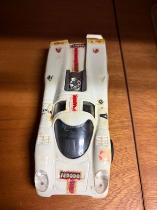 Coche de slot Scalextric Porsche 917K edición México. Blanco hostion. Falta limpieza Lo que ves en la foto - Réplica detallada del icónico coche de carreras. - Diseño clásico en color blanco con detalles rojos y patrocinadores.