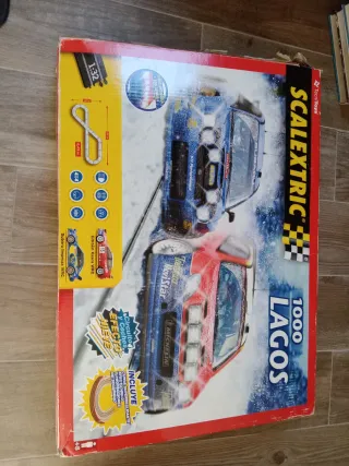 Circuito de Scalextric 1000 Lagos con coches de rally. - Escala 1:32. - Incluye coches Subaru Impreza WRC y Citroën Xsara WRC. - Pista con efecto nieve y curva superdeslizante. - Longitud de pista: 6,40 metros.