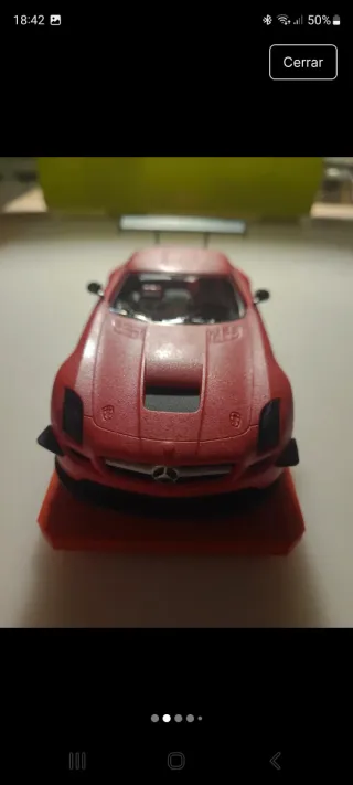 Réplica del coche Mercedes AMG GT3 en color rojo, ideal para coleccionistas y aficionados a las carreras. Pintado a pistola artesanal. Escala 1/32. - Diseño deportivo con alerón. - Ruedas detalladas.