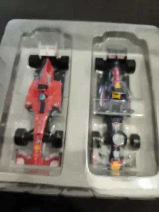 Dos coches de F1 para Scalextric, uno rojo y otro azul. - Coche rojo estilo Ferrari. - Coche azul estilo Red Bull. Se admiten ofertas serias