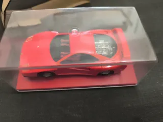 Coche de Scalextric en color rojo. Presentado en su caja expositora transparente. - Réplica detallada del motor en la parte trasera. - Base roja para exhibición. Se admiten ofertas serias
