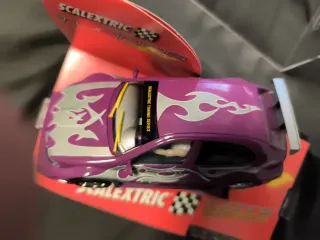 Coche de Scalextric de la serie Tuning. - Color morado con diseño de llamas plateadas. - Incluye alerón trasero plateado. - Ventanas tintadas. Se admiten ofertas serias