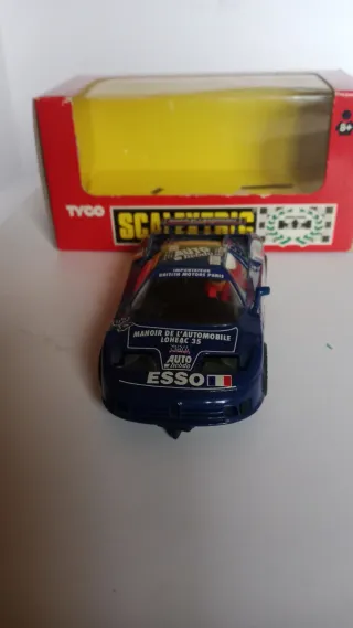 Coche de Scalextric con diseño deportivo. - Decoración de carreras con franjas azules, rojas y doradas. - Logotipos de Racing y Shell visibles. - Detalles en azul en las ruedas y alerón. La caja está deteriorada Se admiten ofertas serias