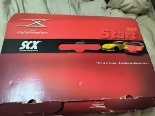 Circuito de carreras Scalextric SCX Digital System. - Sistema digital para hasta 6 coches. - Permite adelantar cambiando de carril. - Incluye dos mandos de mano electrónico. 200. La caja está un poco tocada, por lo demás perfecto