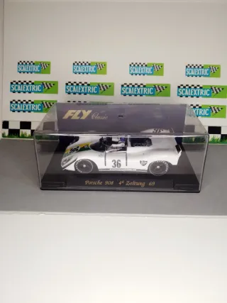 Coche de slot Scalextric Porsche 908 de la colección Fly Classic. - Modelo: Porsche 908. - Colección: Fly Classic. - Decoración: 4ª Zeltweg 69. - Dorsal: 36.