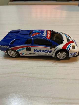 Coche de Scalextric con decoración Valvoline. - Diseño deportivo en azul, blanco y rojo. - Detalles de patrocinadores Valvoline y Advan. - Número de dorsal 88 en el frontal y 188 en el lateral. Se admiten ofertas serias