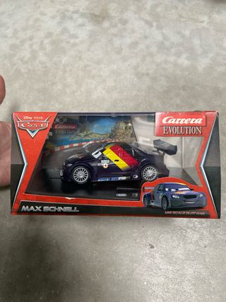 Coche de slot de Cars. Compatible con todas las pistas de slot del mercado, scalextric, ninco, carrera superslot . Escala 1/32. Personaje Max Schnell. ULTIMAS UNIDADES PRECIOS DE LIQUIDACION.
