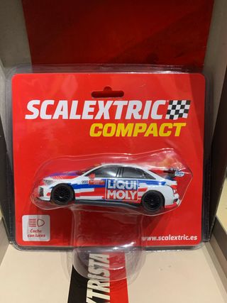 Coche de slot Scalextric Compact. - Modelo: Audi RS 3. - Decoración: LIQUI MOLY. - Incluye luces.
