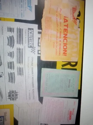 Circuito de Scalextric con varias secciones y curvas. Incluye: CURVAS - 43 tramos de curvas grandes + 8 mas estropeadas. - 10 tramos de curva medianos - 2 tramos de curva pequeños RECTAS - 20 rectas largas + 6 mas estropeadas - 2 rectas medias - 1 recta pequeña VARIOS - 2 cambios de carril - 1 cruce - 1 controlador de vueltas vintage - 4 elevadores de puente - 10 guardarrailes rojos - 2 mandos con transformador y 1 pista de conexion - Compatible con coches Scalextric Se vende todo el pack junto, ideal para expandir tu pista. Precio negociable