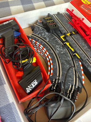Set de Scalextric Compact sin coches solo mandos y pistas. Algunas piezas están las pestañas rotas pero engancha todo lo que sé ve en las fotos - escala 1:43. - Pistas con recorrido de 7,5 m. - Fácil montaje y mayor resistencia.
