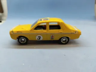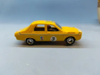 Coche de Scalextric modelo Renault 12 en color amarillo. -Coche dificil de encontrar en buen estado y con su urna original sin roturas. Es de la gama de Scalextric frances.