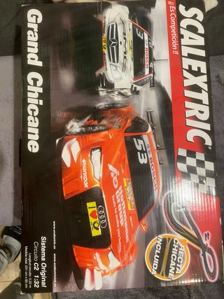 Circuito de Scalextric C2 Grand Chicane y GT Challenge. - Sistema Original Scalextric. - Modelo: Circuito C2. - Escala: 1:32. - Longitud del circuito: 5,22 m. - Medidas totales: 231 cm x 82 cm. - Incluye recta chicane.