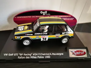 Spirit 701503 Volkswagen Golf GTI Rallye des Milles Pistes 1980 François Chatriot y Annick Peuvergne - Escala 1:32. Se encuentra en perfecto estado, en su caja original. - Ideal para coleccionistas. - A estrenar, nunca usado ni ha tocado pista. En excelentes condiciones. - Solo probado con pila 9 V para verificar motor. Scalextric, SCX, Ninco, Superslot, Avant Slot, Fly, Carrera, Team Slot, NSR, Revell, SRC,