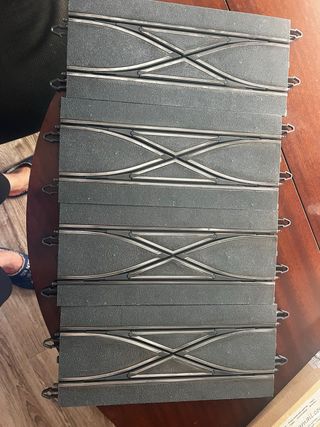 El precio es por una pista, compres una o todas. Se venden 16 curvas estandar, 6 cambios de carril y 2 medias rectas. Necesitan una limpieza tienen algo de oxido. Es para alguien que tenga tiempo para ponerlas a punto. De hay su bajo precio Algunas son power line. 2 medias rectas y 4 curvas El precio no es negociable. No cambio. Gracias Gasto de envío a cuenta del comprador - Piezas de pista de color gris. - Requieren restauración.